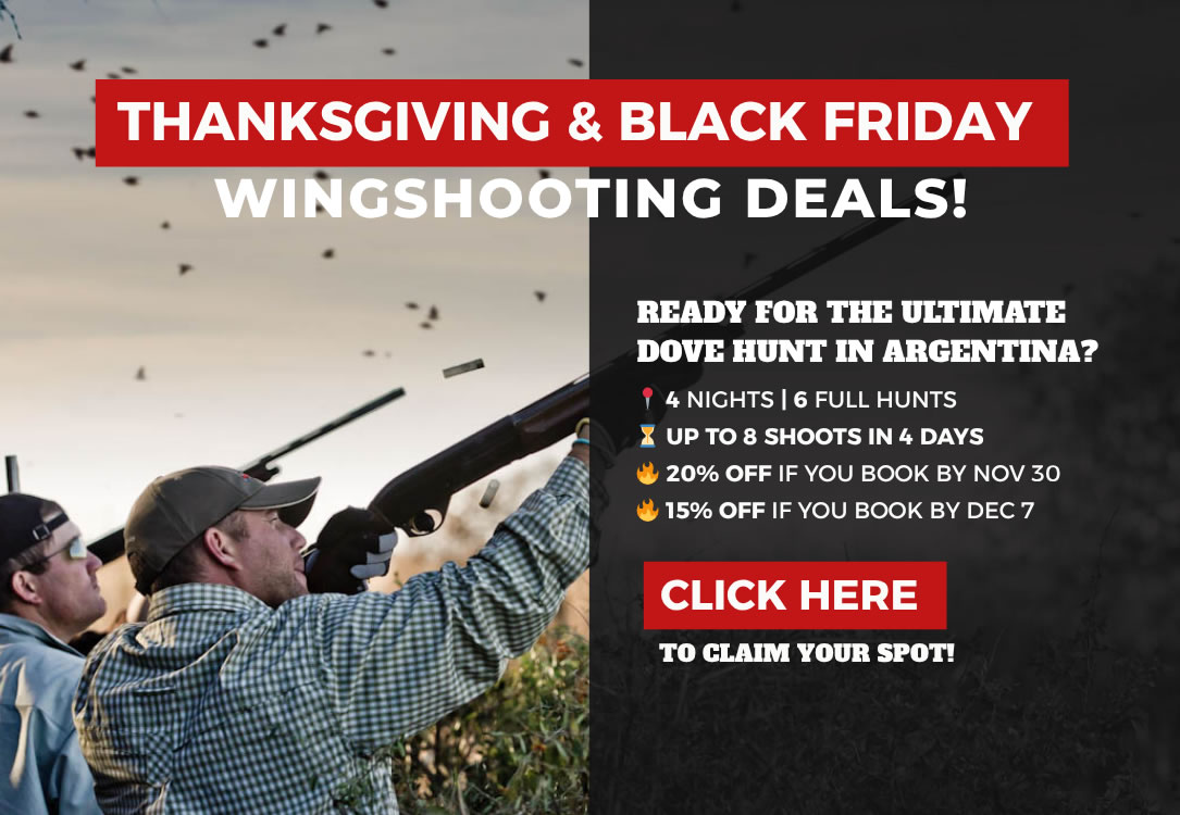 For those clients who wish to bring their sons to shoot world class doves in Cordoba, we are running a promotion this year. From June-Sept, sons go for 50% off and from October to December first son goes free and second son goes for half the father rate. We still have openings during the Thanksgiving and Christmas dates.